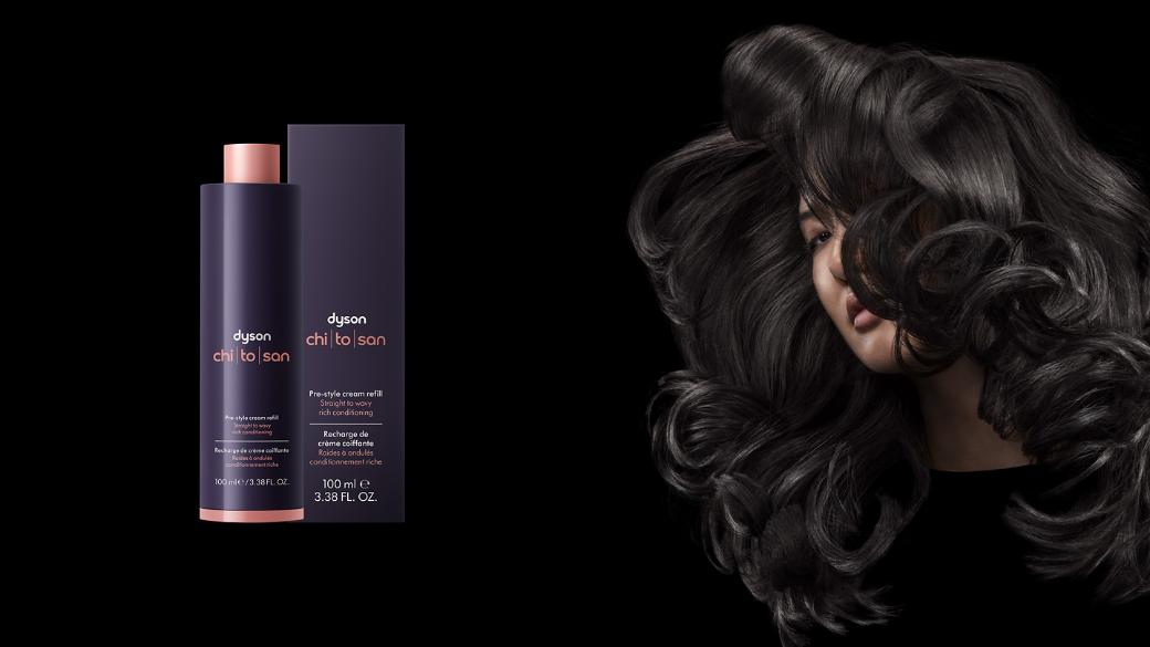 تم تطوير كريم ما قبل التصفيف ™Dyson Chitosan للترطيب المكثّف للشعر المالس إلى المُموَّج من أجل الشعر المالس الطبيعي أو المُموَّج قليلاً أو الذي يتميز بأشكال مُموَّجة على شكل حرف S. يتميّز بتركيبة غنية أكثر بالمكونات المُرطِّبة، تشتمل على زيوت بذور الخروع والأرغان، ومن ثمّ يناسب أفضل خصلات الشعر الأكثر سُمكاً وتلك التي بحاجة إلى عناصر مُغذية أكثر كثافةً.