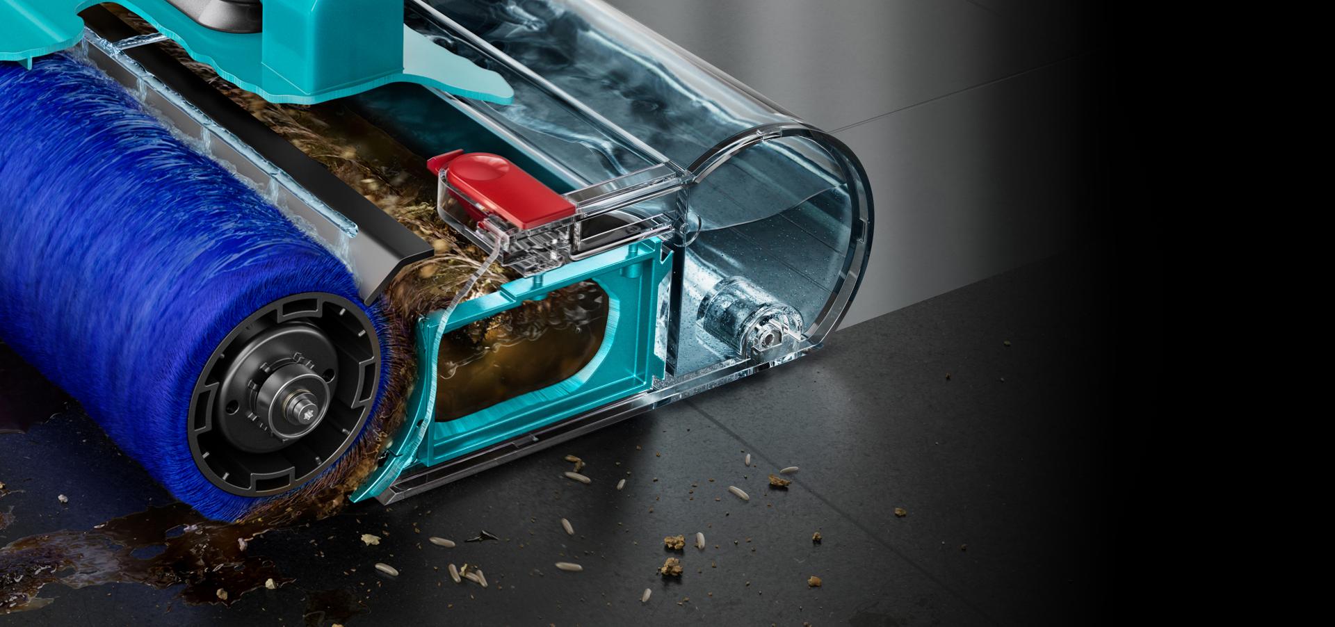قد تترك بعض وسائل التنظيف الرطب بعض الآثار والعلامات وراءها على الأرضيات. لذلك صُمِّم الرأس الأسطواني المُبلّل Dyson Submarine™ لامتصاص واستخلاص كل شيء حتى يترك الأرضية نظيفة تماماً وخالية من أي علامات.
