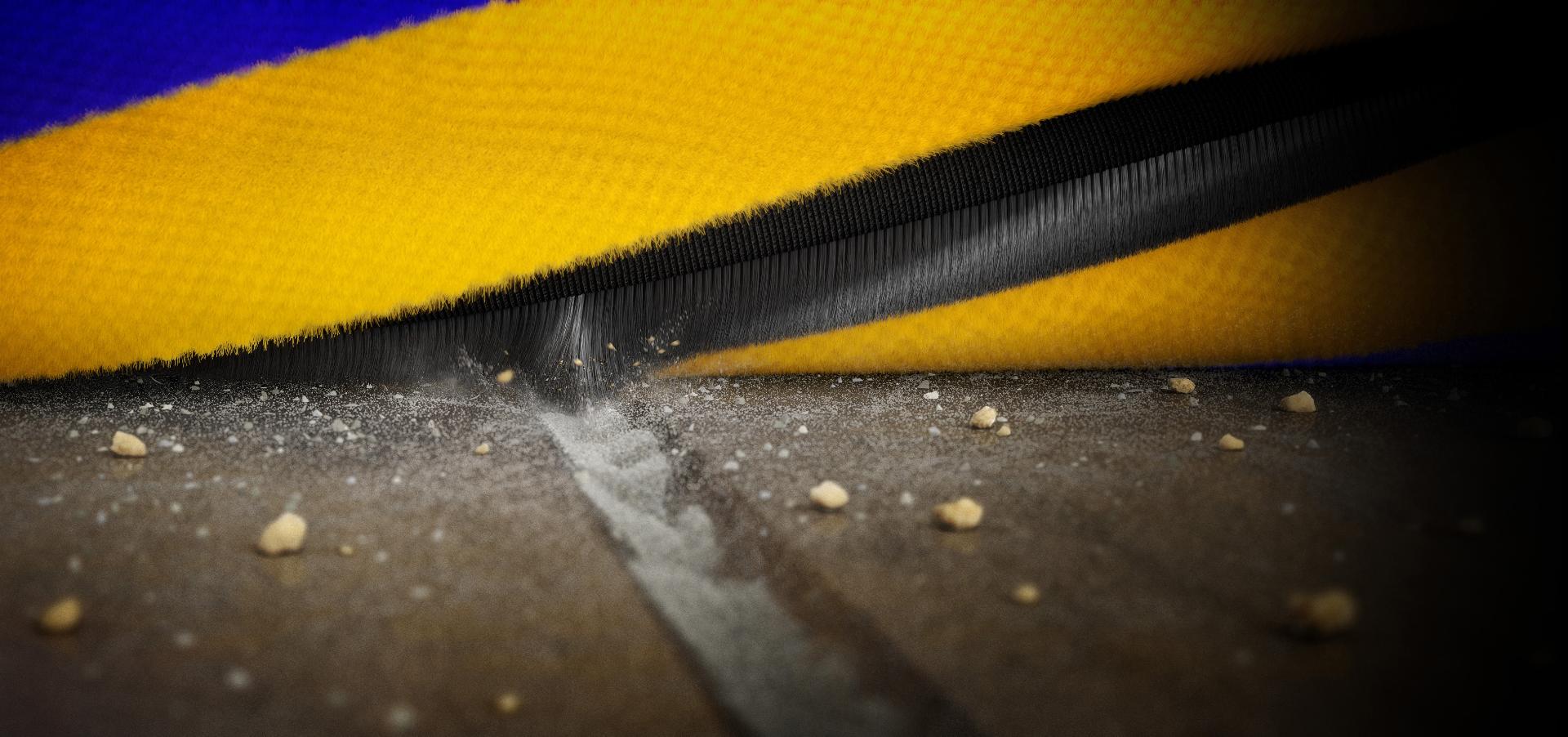 تقوم شعيرات الألياف الكربونية في عمود الفُرَش بإزالة جسيمات الأتربة من الأرضيات الصلبة.