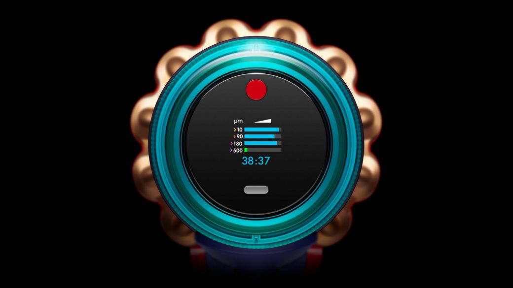• A close-up shot of the Dyson Gen5detect vacuum's LCD screen.